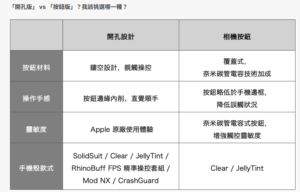 A:目前相機按鈕暫不提供單獨販售。為了提供最佳操作體驗,開孔設計款與相機按鈕款的手機殼在相機控制處採用了不同設計,因此兩個版本無法相容使用。